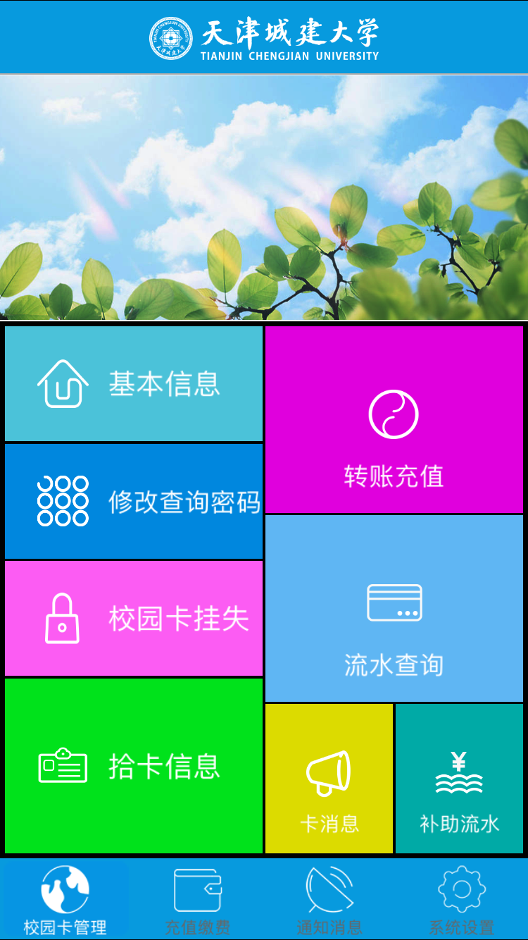 本校讯(通讯员王一超)2月27日,校园一卡通系统升级后,给师生们带来了便捷、高校的校园生活。为了使师生获得更好的用卡体验,我们定制开发的掌上校园APP经过测试正式上线。全新的掌上校园APP集充值缴费、修改密码、流水查询、挂失补办四大功能于一体,用户交电费、交网费、查流水、转账充值,再也不用排队,足不出户就可以玩转校园。