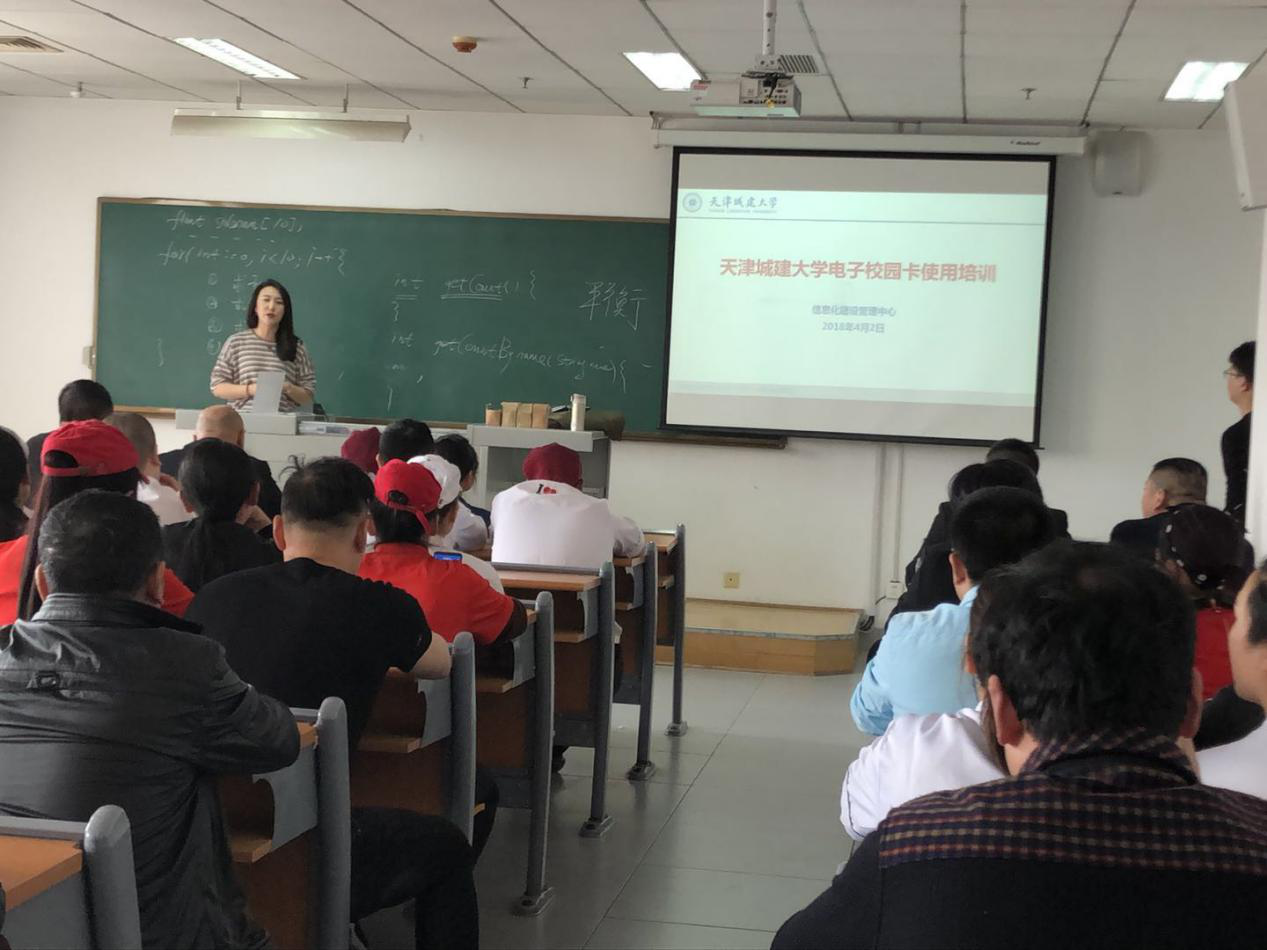 2018年4月2日,我部门一卡通中心携手后勤处和社会服务办,组织校内各商户代表60余人,在现代教育中心A610召开了项目启动会。会上信息化建设管理中心边菁华副主任做了项目启用动员;项目实施单位天津新中新公司技术常工,给大家进行了电子校园卡内容、对账、查账等功能的使用培训。